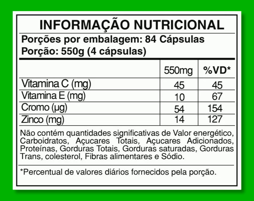 Picolinato de Cromo: Este mineral essencial desempenha um papel fundamental no metabolismo de carboidratos, proteínas e gorduras, ajudando a controlar o açúcar no sangue e reduz os desejos por alimentos açucarados.